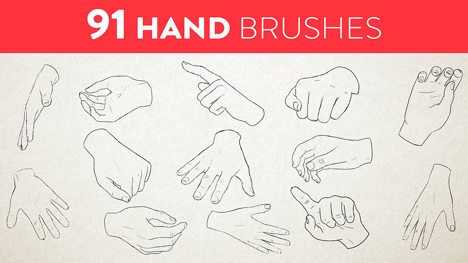 91 hand pack to use as Photoshop brushes.